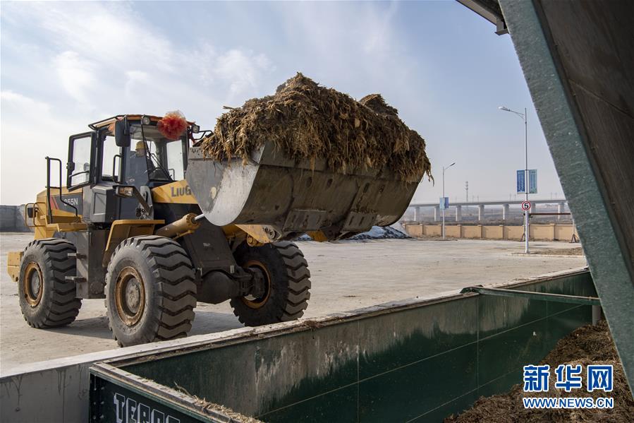11月26日,在位于原平市解村乡解村的山西神沐新能源公司内,工作人员在向秸秆预处理装置内投放秸秆。 新华社记者 杨晨光 摄