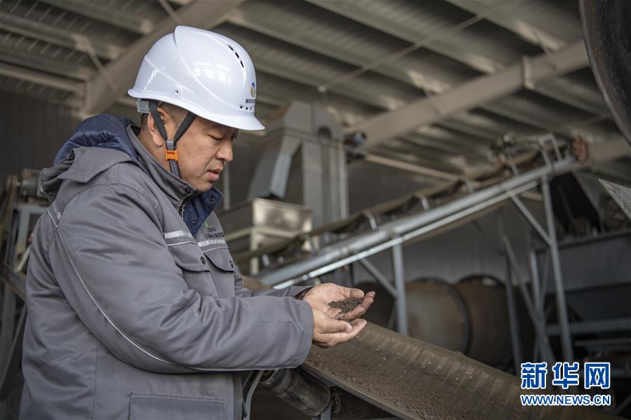 11月26日,在位于原平市解村乡解村的山西神沐新能源公司内,工作人员检查以秸秆为主要原料生产的有机肥。 新华社记者 杨晨光 摄