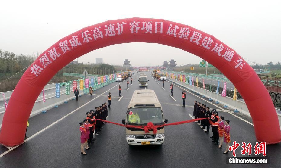 11月27日,四川眉山,成乐高速扩容项目试验段建成通车仪式现场。当日,G0512成(都)乐(山)高速公路扩容项目试验段建成通车。此次通车路段由青龙场至眉山,共28公里。成乐高速是四川黄金旅游通道,通车后该段道路拥堵现状将得到缓解。 中新社记者 刘忠俊 摄