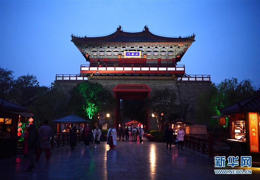 11月26日,游客在开封清明上河园景区游览。 新华社记者 李嘉南 摄