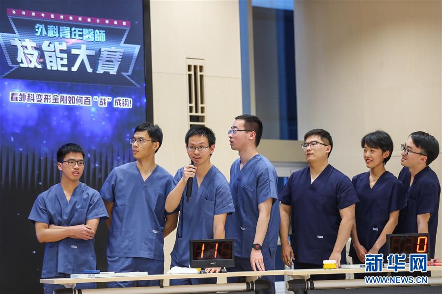 11月27日,参赛选手在比赛中回答问题。 当日,北京协和医院外科青年医师技能大赛举行决赛。经过前期的集训和多维度考核选拔,最终有四支队伍进入决赛,青年医师现场进行手术操作等方面的比拼,展现临床综合能力。比赛全程还通过远程系统向西藏自治区人民医院进行了直播,促进青年医生交流学习。 新华社记者 张玉薇 摄