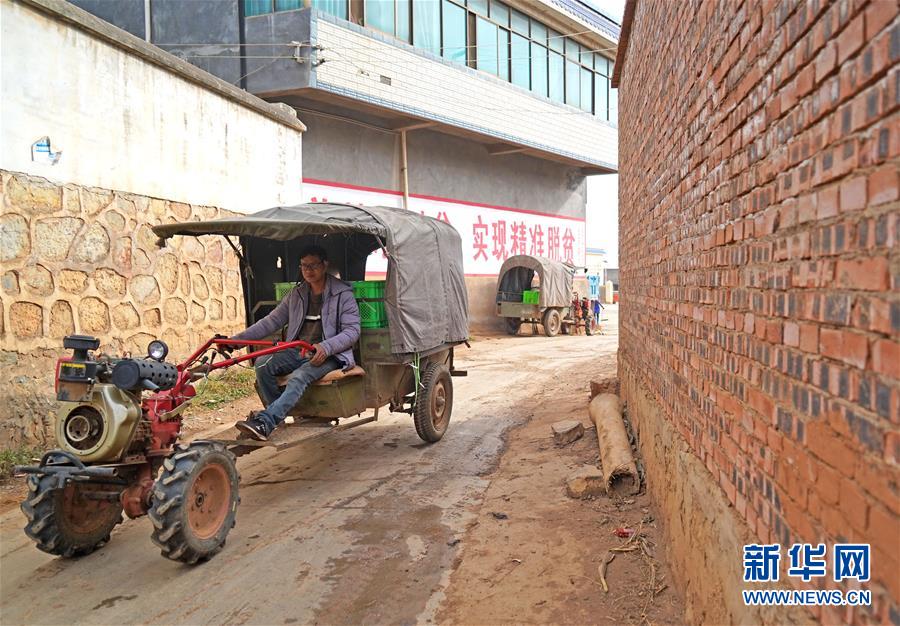 11月28日,在云南省石林彝族自治县西街口镇路花村,张建伟开着拖拉机去往自家地里准备采收人参果。 新华社发(王曦 摄)