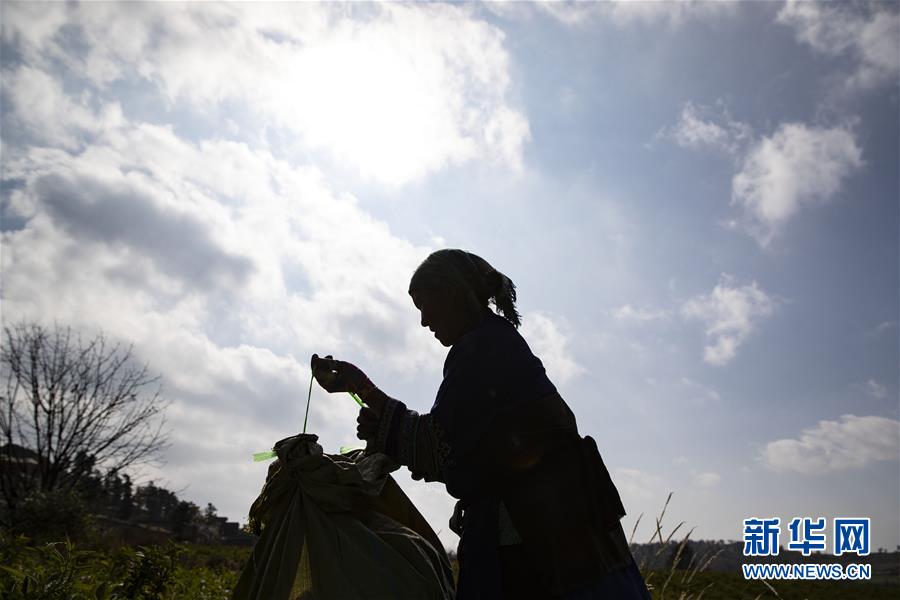 11月28日,在云南省石林彝族自治县西街口镇路花村,张建伟的母亲黄兰芳准备采摘人参果。 新华社记者 李明 摄