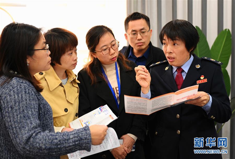 11月28日,国家税务总局福州经济技术开发区税务局工作人员郑秀英(右一)向福州马尾区的中小微企业财务人员进行政策解读。