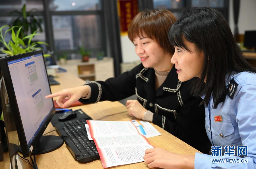 11月28日,国家税务总局福州经济技术开发区税务局工作人员张莹(右)在福州马尾基金小镇为企业财务进行指导。 新华社记者 魏培全 摄