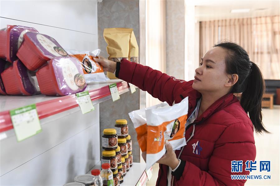 甘有琴在她的电商基地整理货架上的商品(12月3日摄)。新华社记者 曹祎铭 摄