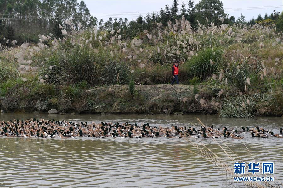 12月5日,养殖户在广西环江才厚生态养殖专业合作社看护香鸭。 2018年,广西环江毛南族自治县长美乡关安村成立环江才厚生态养殖专业合作社,以“党支部+合作社+基地+农户”的方式养殖环江香鸭。目前,合作社养殖环江香鸭近3000羽,带动附近40个贫困户参与养殖增加收入。 新华社记者陆波岸摄