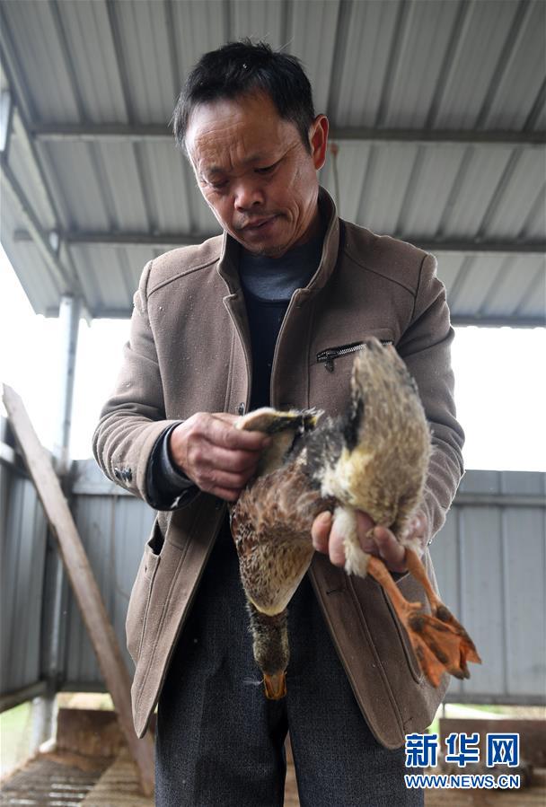 12月5日,在广西环江才厚生态养殖专业合作社,养殖户崖天笑在查看一只香鸭的生长情况。 2018年,广西环江毛南族自治县长美乡关安村成立环江才厚生态养殖专业合作社,以“党支部+合作社+基地+农户”的方式养殖环江香鸭。目前,合作社养殖环江香鸭近3000羽,带动附近40个贫困户参与养殖增加收入。 新华社记者陆波岸摄