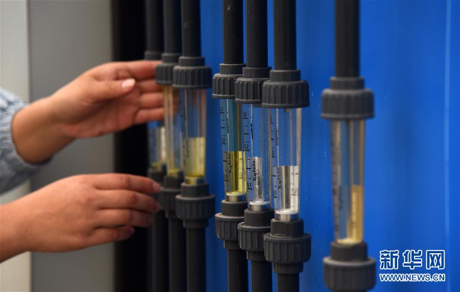 11月13日,山东省日照市莒县招贤镇现代化玫瑰产业园园区负责人张艳娇在玫瑰鲜切花大棚内的设备上查看参数。 新华社记者王凯摄