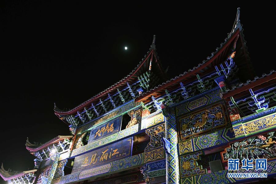 丽江古城夜景(12月7日摄)。 进入冬季,夜幕中的云南丽江古城灯光璀璨,景色诱人,游客徜徉在蜿蜒曲折的石板路上,体验独特的民俗风情和地域文化。 新华社记者 杨宗友 摄