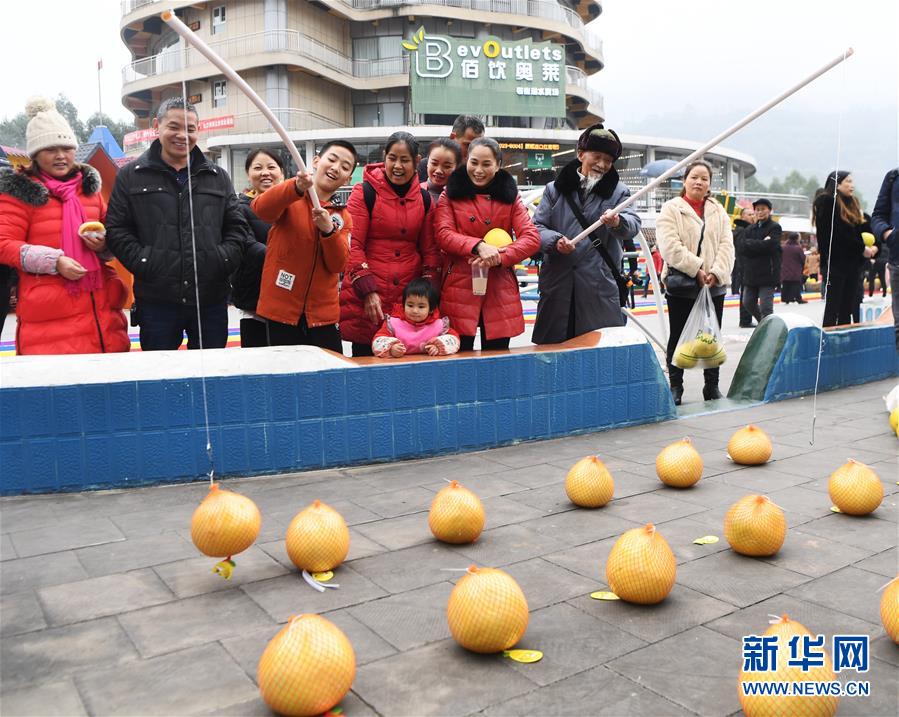 12月7日,游客参与“钓柚子”爱心义卖活动。 当日,重庆涪陵美心红酒小镇举办“滚滚爱心”义卖活动,将从当地贫困村收购的近万斤柚子,通过“钓柚子”“抱柚子赛跑”“柚子涂鸦”“柚子滚滚来”等形式,让大家参与趣味义卖,并将义卖所得通过重庆市涪陵区红十字会定向捐献给涪陵区爱心树特殊儿童发展中心。 新华社记者 王全超 摄