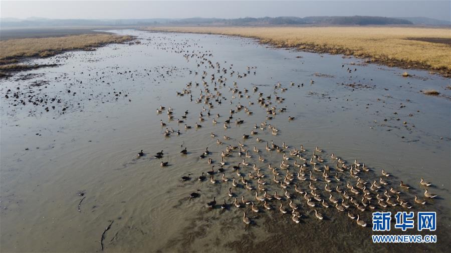 入冬以来,安徽省池州市升金湖国家自然保护区迎来候鸟迁徙高峰。升金湖国家自然保护区位于长江中下游南岸的安徽池州市境内,是我国和亚太地区珍稀候鸟的越冬地和栖息地之一,区内生态环境优美,有机质丰富,每年吸引100多种鸟类到此越冬。