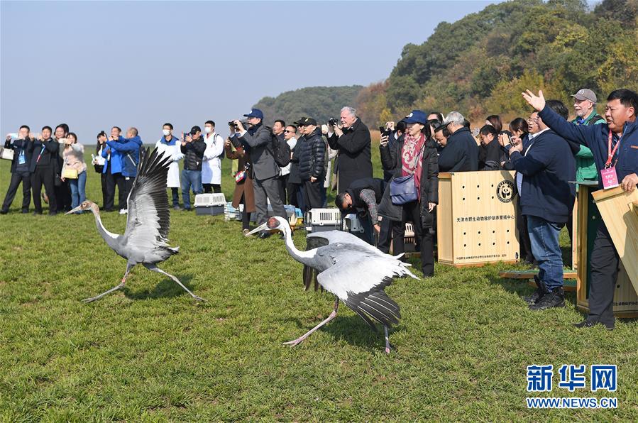 12月8日,工作人员放飞两只白枕鹤。 当日,国内多家野生动物保护机构在江西鄱阳湖国家级自然保护区将120只被救治的珍稀候鸟成功放飞。 12月7日,2019鄱阳湖国际观鸟周在江西南昌开幕,为期五天的活动包括学术论坛、放飞候鸟、摄影比赛、公众观鸟等内容。 新华社记者 万象 摄