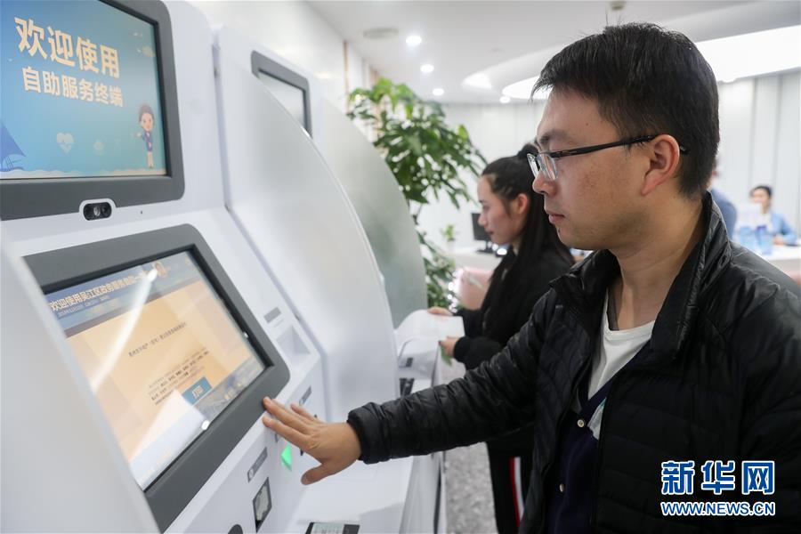 12月12日,在位于上海虹桥世界中心的嘉善政务服务分中心,人们在“自助通办”终端前办理业务。新华社记者 丁汀 摄