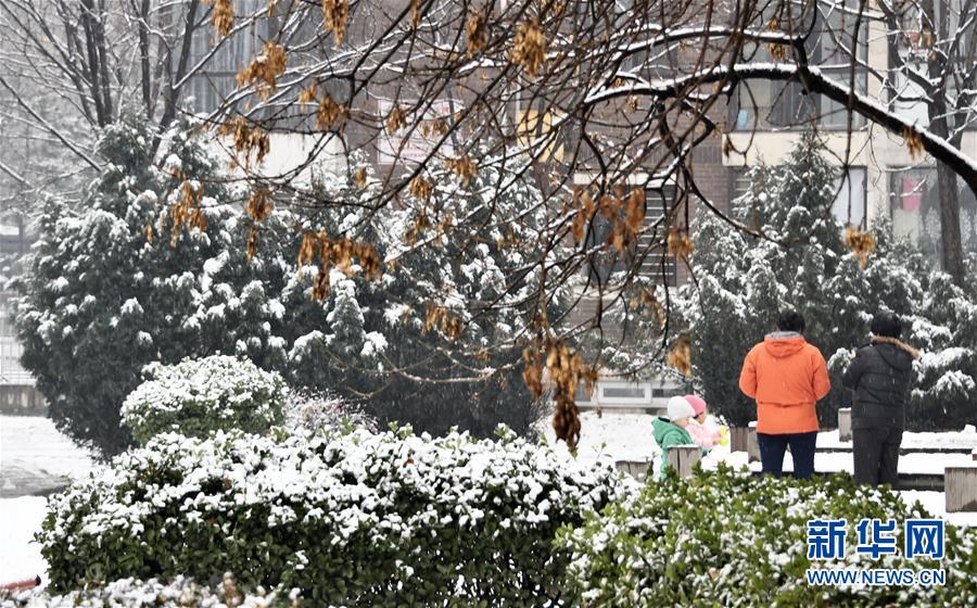 12月16日,市民在北京市一小区内赏雪。 当日,北京迎来降雪天气。 新华社记者 李欣 摄