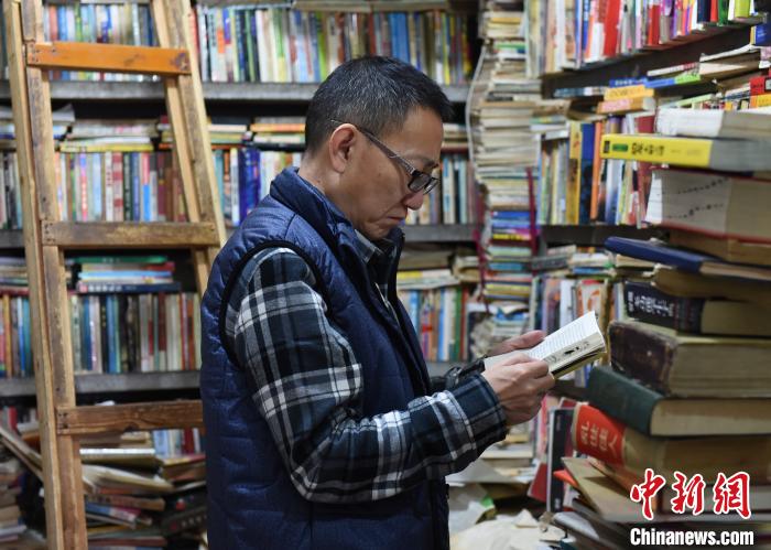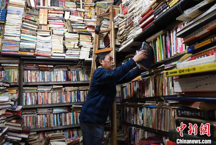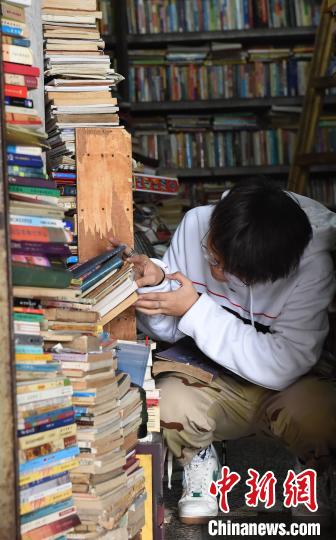 图为旧书店的老板王米瑜正在整理书籍。 周毅 摄