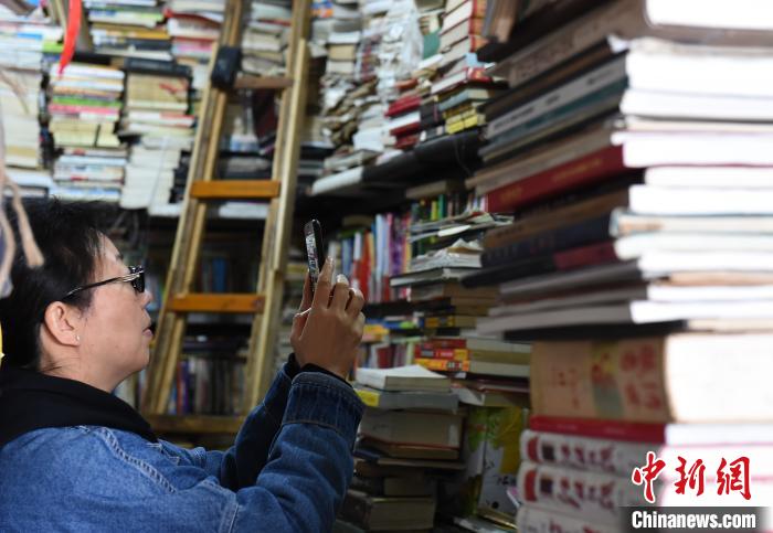 图为市民在营业了近20年的旧书店内打卡怀旧。 周毅 摄