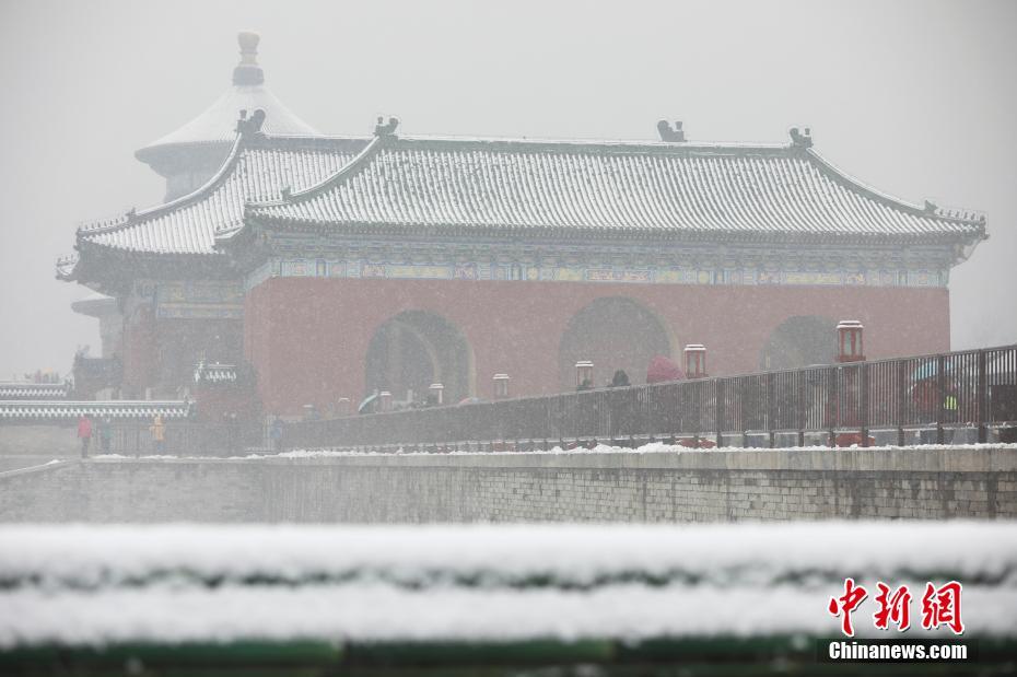 12月16日,北京迎来今冬第二场雪,天坛公园银装素裹,美不胜收。 中新社记者 赵隽 摄