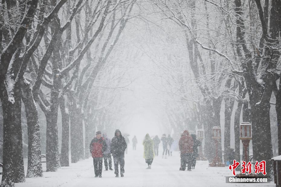 12月16日,游客在北京天坛公园欣赏雪景。当日,北京迎来今冬第二场雪,天坛公园银装素裹,美不胜收。 中新社记者 赵隽 摄