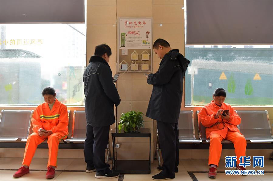 12月17日,户外劳动者在江西省南昌市西湖区桃花镇工会户外劳动者驿站内给手机充电、休息。 近年来,江西省南昌市西湖区充分整合社会资源,积极推进环卫工人等户外劳动者“爱心驿站”建设,为广大户外劳动者打造温馨的“职工之家”,在“驿站”内配套桌椅、储物柜、微波炉、饮水机、冷暖设备、应急药箱、充电插座等设备,为环卫工人、出租车司机、园林工人、快递员等户外劳动者提供休息、饮水、如厕、零钱更换、安全教育及交流培训等公益服务。 新华社记者 彭昭之 摄