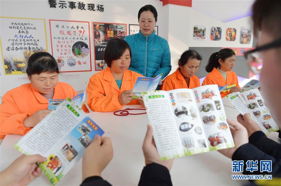 12月17日,在江西省南昌市西湖区桃花镇工会户外劳动者驿站,环卫工人和综合执法协管员一起学习户外安全作业手册。新华社记者 彭昭之 摄