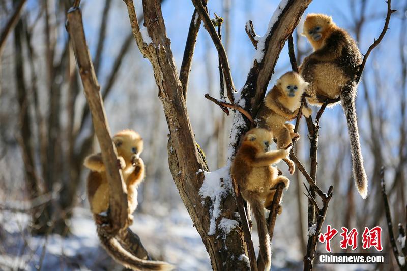 湖北神农架雪中“萌神”金丝猴灵动可爱