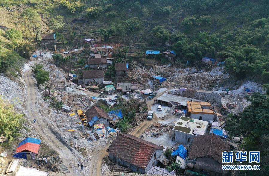 在广西大化瑶族自治县板升乡八好村,刚刚修通公路的弄麻屯在进行大规模的危旧房改造(11月12日无人机拍摄)。新华社记者 黄孝邦 摄