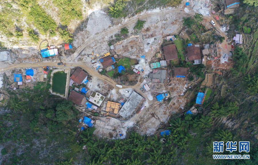 在广西大化瑶族自治县板升乡八好村,刚刚修通公路的弄麻屯在进行大规模的危旧房改造(11月12日无人机拍摄)。新华社记者 黄孝邦 摄