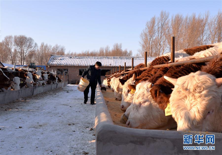 12月19日,科左后旗巴嘎塔拉苏木伊和布拉格嘎查的黄牛品种改良员白好斯巴根在自家后院饲养黄牛。白好斯巴根从事黄牛品种改良20多年,为当地贫困户免费提供改良技术。 新华社记者徐钦摄