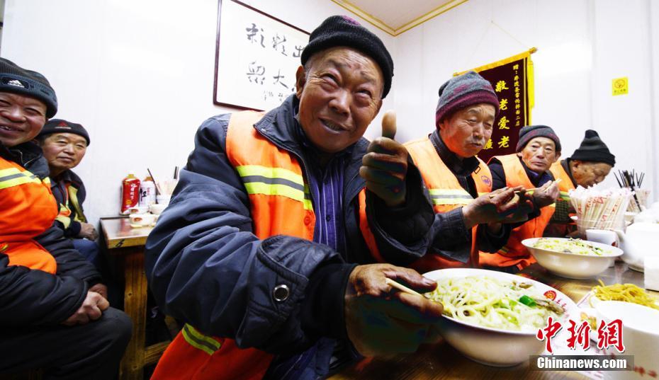 山东海阳一店主冬日请环卫工人吃“摔面” 已坚持6年