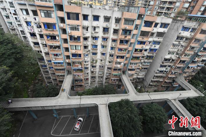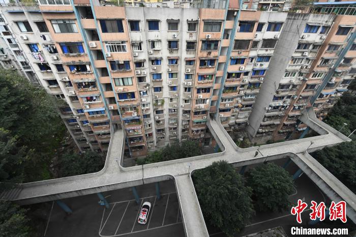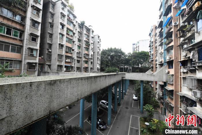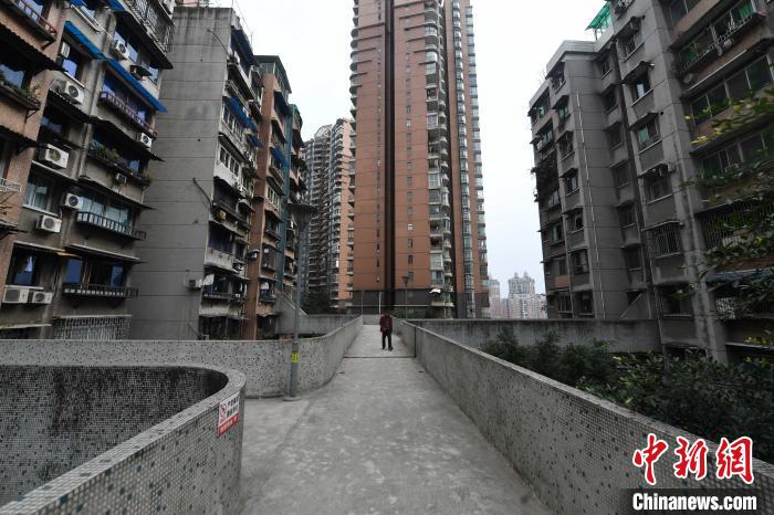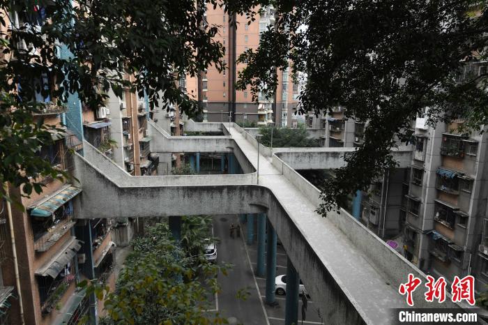 12月26日,重庆民众经过连廊出行。在重庆渝中区,一老旧小区的几栋居民楼的4楼中间,建起了连接各个单元的空中走廊,家家户户来往畅通无阻。通过这个空中走廊,居民便可以经过一个楼梯,直接走上平街。这个小区也是最具山城特色的居民楼之一,居民出行犹如空中漫步。