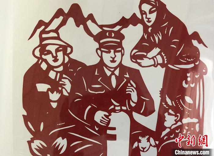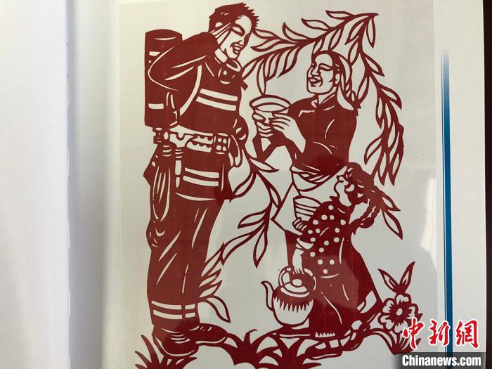 图为剪纸还原百姓感谢消防员场景。 王艺霏 摄