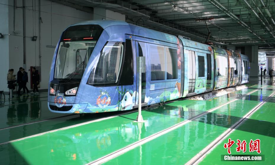四川成都,即将上线运行的有轨电车“国‘保’档案号”主题列车。中新社记者 刘忠俊 摄