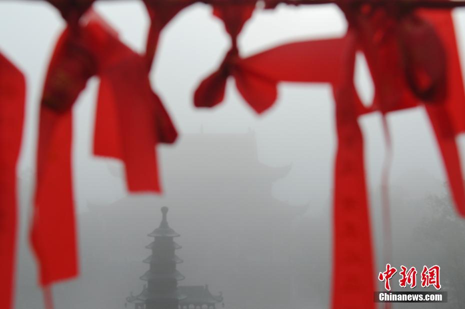 12月30日,开福寺掩映在大雾中,宛如仙境。当日,安徽省合肥市城区被大雾笼罩,能见度不足300米,绕城高速全线封闭,安徽省气象部门发布大雾橙色预警。张娅子 摄