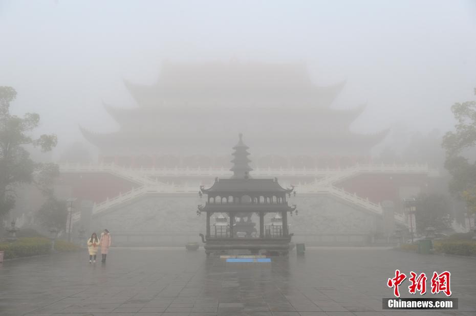 12月30日,开福寺掩映在大雾中,宛如仙境。当日,安徽省合肥市城区被大雾笼罩,能见度不足300米,绕城高速全线封闭,安徽省气象部门发布大雾橙色预警。张娅子 摄