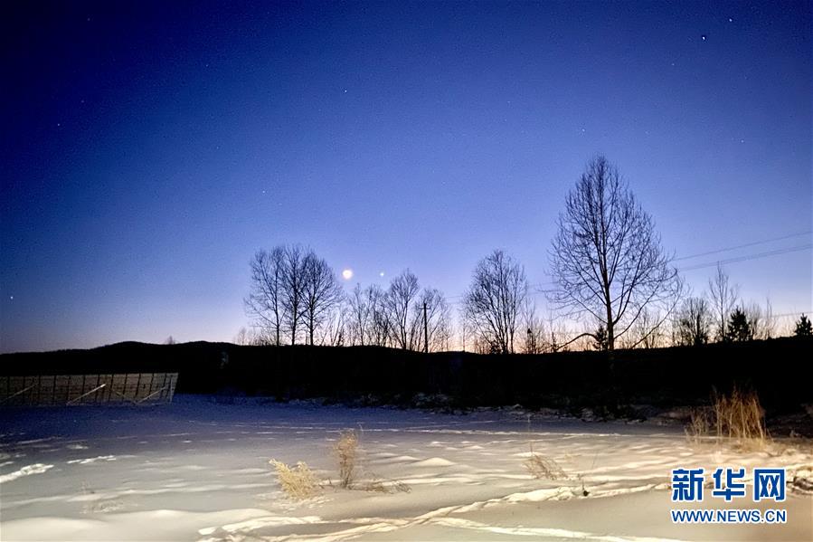 傍晚时分拍摄的黑龙江省漠河市北红村景色(12月29日摄)。 新华社记者 杨思琪 摄