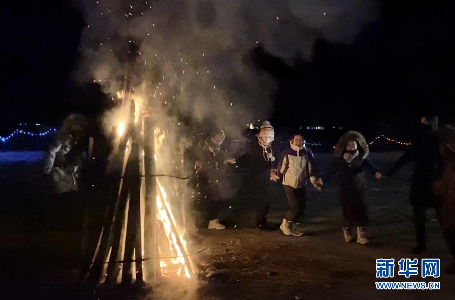 游客在黑龙江省漠河市北红村参加篝火晚会(12月29日摄)。 新华社记者 杨思琪 摄