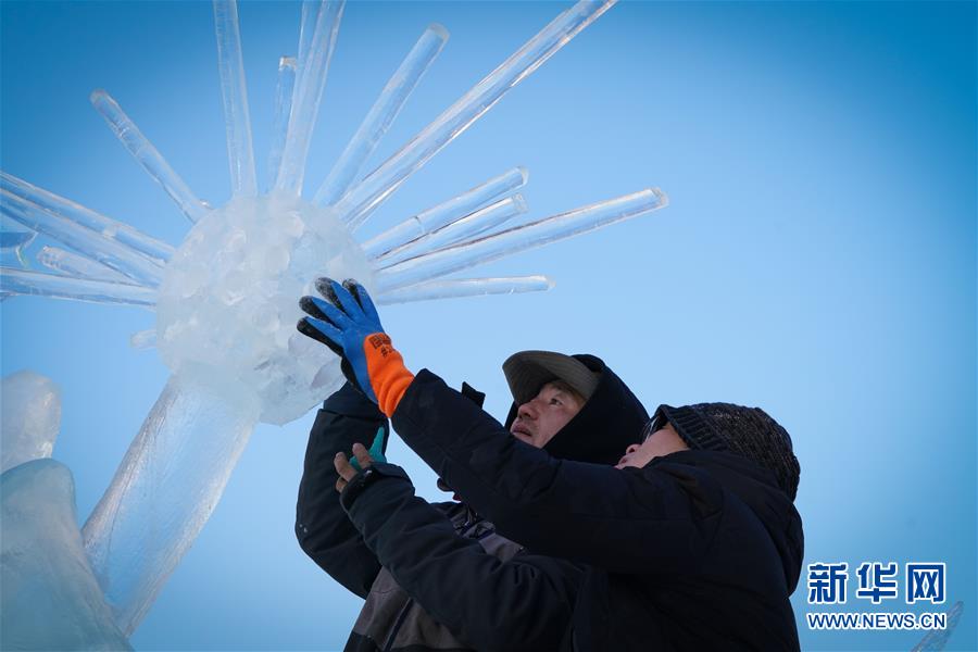 1月2日,选手在哈尔滨冰雪大世界内制作冰雕。新华社记者 王松 摄