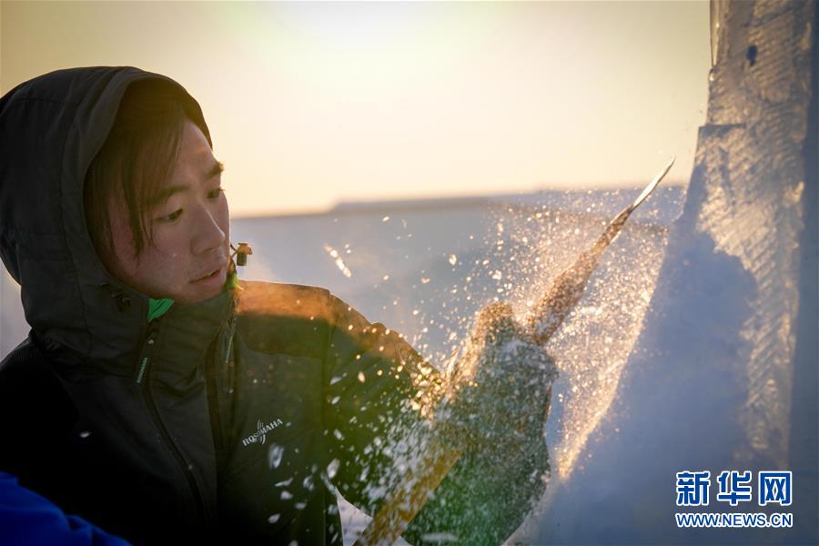 1月2日,选手在哈尔滨冰雪大世界内制作冰雕。新华社记者 王松 摄