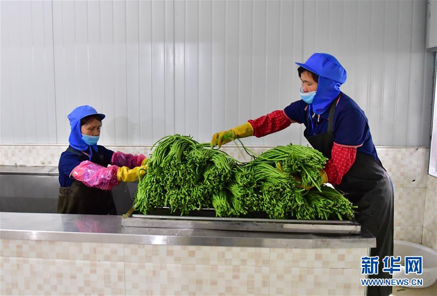 在柳州市鱼峰区一家豆角加工企业,工人在清洗刚刚收购的豆角(2019年7月9日摄)。近年来,鱼峰区大力发展螺蛳粉原材料豆角种植产业,带动4个贫困村900多户贫困户参与,目前豆角种植面积达到5000多亩。新华社记者 黄孝邦 摄