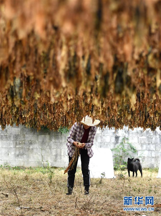 1月2日,在广西柳州市鱼峰区里雍镇长沙村长沙屯,村民在晾晒腌制过的头菜。新华社发(黎寒池 摄)