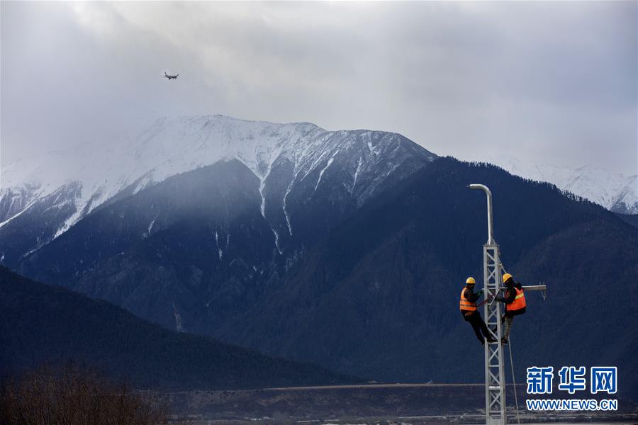 1月3日,在西藏林芝市米林县,中铁电气化局集团西安电化公司工人在进行电气化施工。新华社发(焦宏涛 摄)