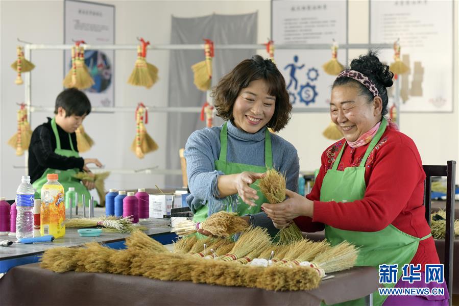 1月4日,工人在一家笤帚苗加工厂交流技艺。新华社发(王正 摄)
