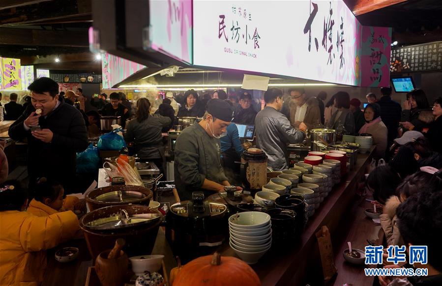 1月5日,苏州双塔市集美食区吸引了许多人。新华社记者 季春鹏 摄