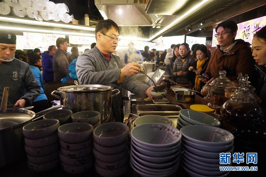 1月5日,人们在苏州双塔市集等待品尝美食。新华社记者 季春鹏 摄