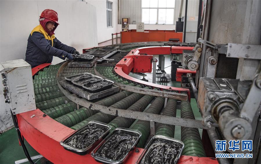 1月5日,陕西元能新材料科技有限公司的员工在生产线上对超级电容电极材料进行活化处理。新华社记者 陶明 摄