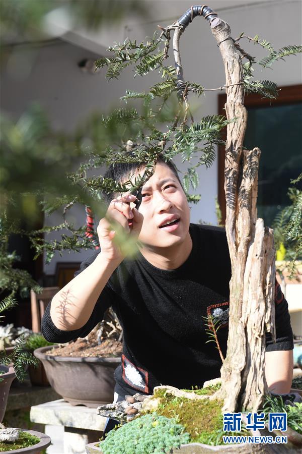 造盆景的“90后”山村男孩