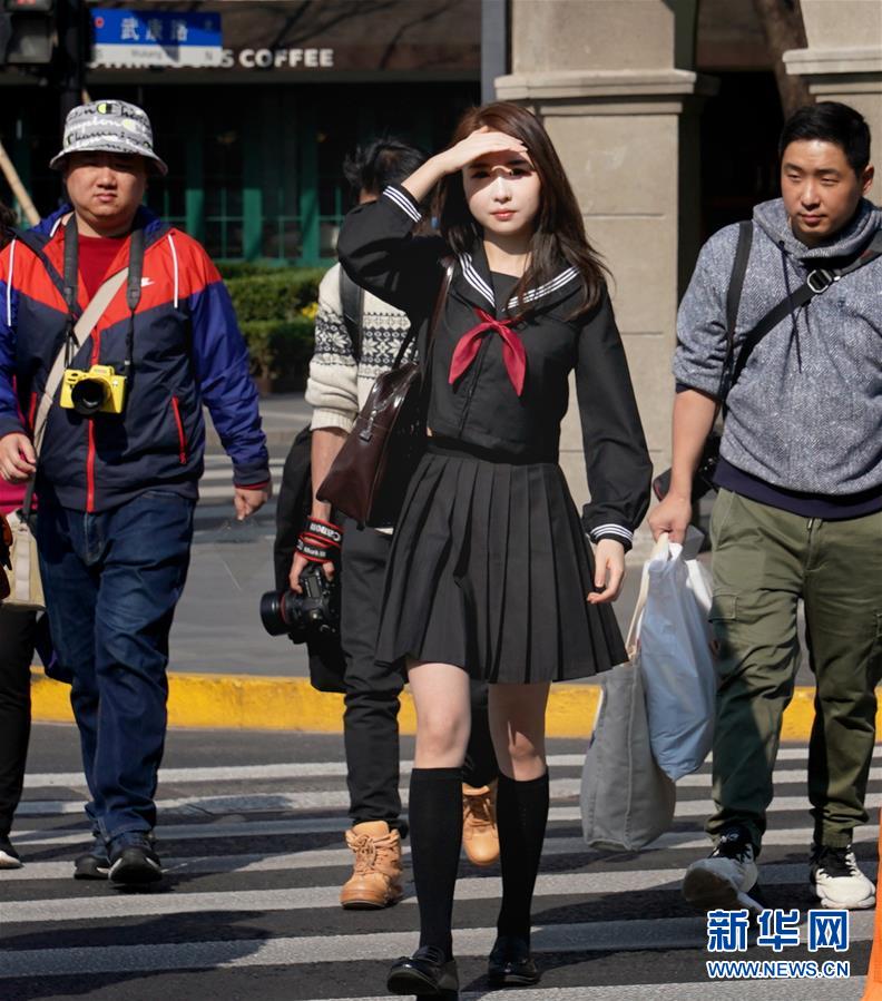 这是1月6日在上海淮海西路拍摄的行人。 当日是小寒节气,但上海暖似阳春。据上海中心气象台发布的数据,上海当日最高气温超过20摄氏度。 新华社记者 刘颖 摄