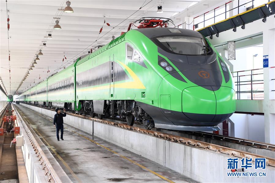 1月7日,铁路员工在对CR200J动车组列车进行检测维护。新华社记者 唐奕 摄