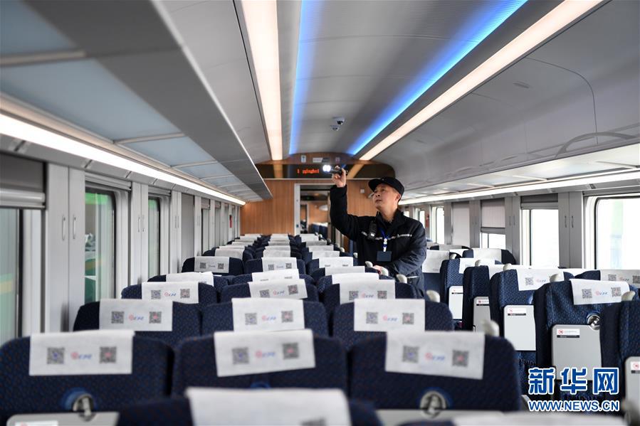 1月7日,铁路员工在对CR200J动车组列车车内设施进行检测维护。新华社记者 唐奕 摄
